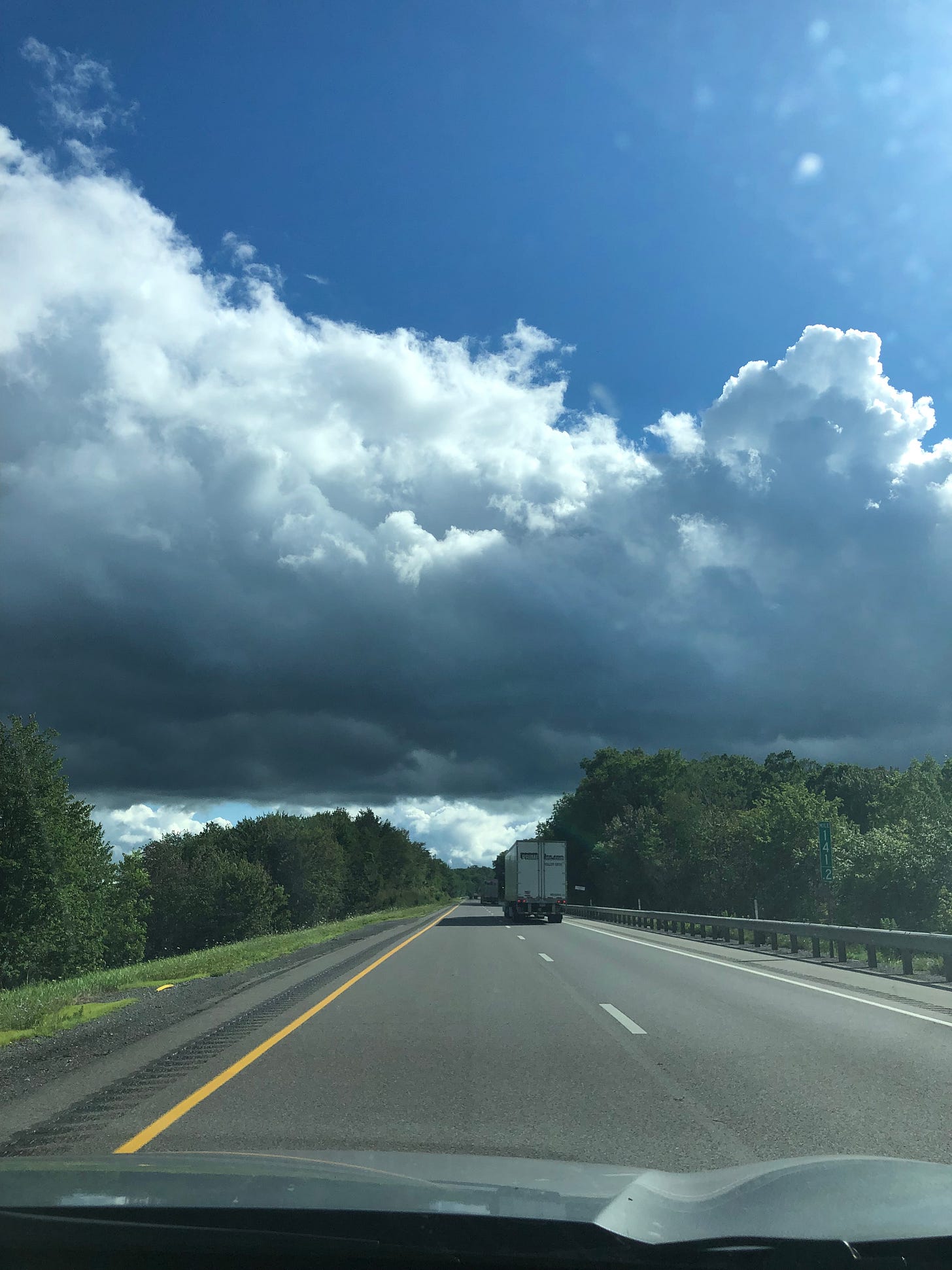 It is hard to see when your cruise control keeps you right behind the semi and it is raining really hard. At this point be very grateful for childhood piano lessons because it is not impossible to flick the settings on the wipers with just your pinky but you have to be able to move it independently of the other fingers which are white-knuckling the steering wheel.